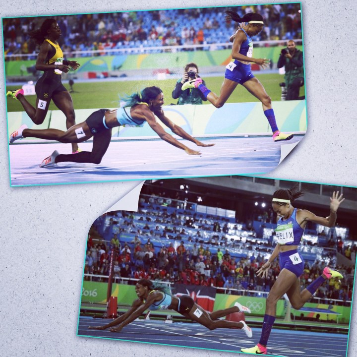 Shaunae Miller from Bahamas with her last breath dove for it. She edged American Allyson Felix by .07 seconds to deny Felix a fifth Olympic gold. It really was a thrilling finish.